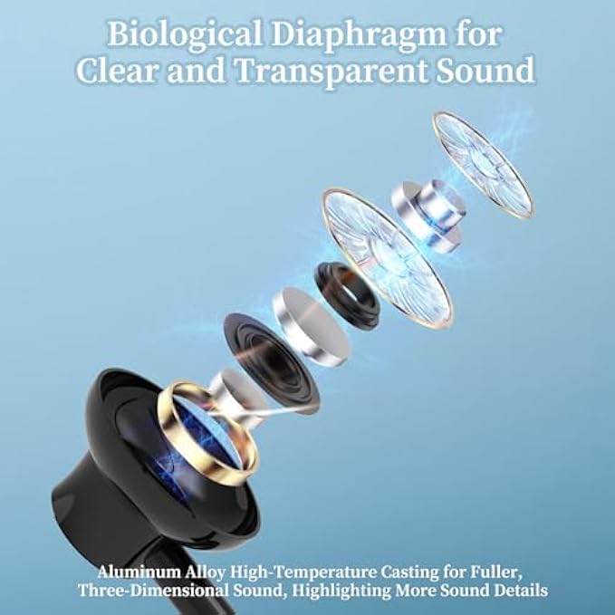 • BIOLOGICAL DIAPHRAGM TECHNOLOGY FOR CLEARER SOUND: Crafted from aluminum alloy through high-temperature casting, the neck band bluetooth earbuds deliver a more three-dimensional sound and reveal more sound details, allowing users to enjoy high-quality music anytime, anywhere