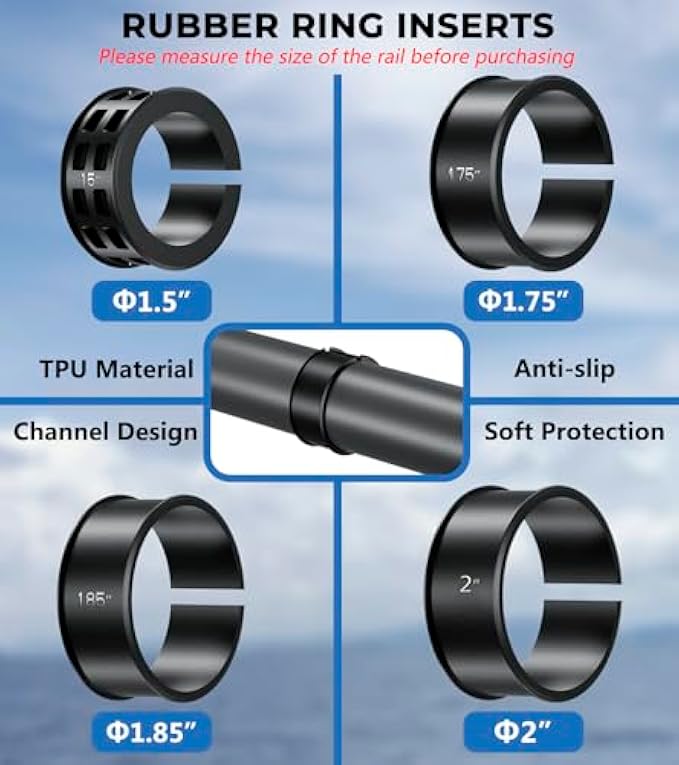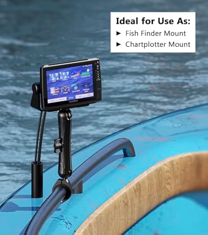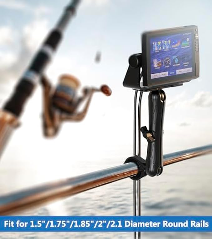 Package Includes: The fish finder mount consists of a 1.5" ball diameter bar clamp base, a 9.1" long double socket arm and a 6.25" x 2" marine electronic rectangle plate Sturdy & Durable: The bar clamp base & rectangle plate are made of 6061-T6 aluminum alloy material with CNC machining and iii grade hard anodized surface. The 1.5" ball long double socket arm is made of powder-coated, 6061-T6 aluminum alloy for durability and reliability in the most hardest marine environments Anti-slip Rubber Ring Insert: The bar clamp base includes a 1.5" TPU ball and equips with four soft rubber ring inserts that provide a snug fit and protect the mounting surface.The bar clamp base fits for 1.5"(38.1 mm) / 1.75"(44.45 mm) / 1.85"(46.99 mm) / 2"(50.8 mm) / 2.1"(53.34 mm) diameter round rails. An allen key is included in the package for your convenience to install Wide Application: The rectangular plate includes a C size 1.5" TPU ball and contains a variety of pre-drilled holes that are compatible with several marine electronic devices, including fish finders and chartplotters Compatible with Garmin: ECHOMAP Plus 72cv 73cv, 74cv, 75cv 77cv; GPSMAP 722, 722xs, 742, 742xs; Striker Plus 5cv, 7cv, 7sv, and other Fish finders and GPS Chartplotters Compatible with Lowrance: HDS Carbon 7, HDS LIVE 7, Hook Reveal 7 Series, Hook Reveal 9 Serie, and other Fish finders and GPS Chartplotters Partial Compatibility: Compatible with Humminbird & Raymarine Fish Finders, GPS Chartplotters. (Please Note: Not compatible with the Humminbird Helix 5, Helix 7, Helix 8, Helix 9, Helix 10, Helix 12, Helix 15 and Solix 10) Please Note: Before purchasing, please measure the diameter of your round rail to ensure the bar clamp base will fit your rail