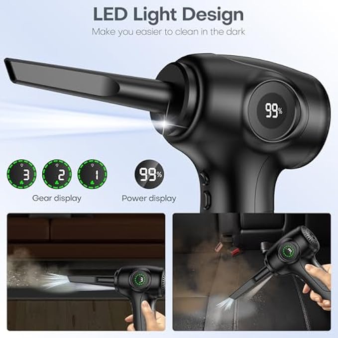 • Powerful Compressed Air Duster : Equipped with a high-efficiency air blower for car detailing and other electronic devices, this compressed air duster is a powerful tool for maintaining cleanliness of your equipment