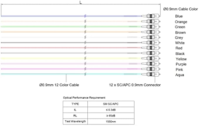 1-Pack 1 Meter SC/A 12 Fiber 900um Fiber Optic Pigtail, Corning SMF-28 Singlemode 9/125um Ultra Optical Fiber, OS1/OS2 Compatible