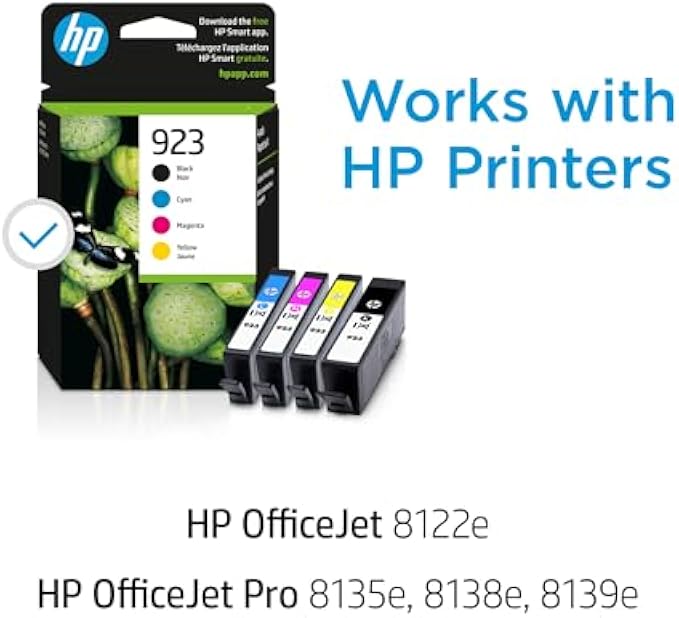 HP 923 Black, Cyan, Magenta, Yellow Ink Cartridges (4-Pack) | Works OfficeJet 8120 Series, OfficeJet Pro 8130 Series | Eligible for Instant Ink | 6C3Y6LN