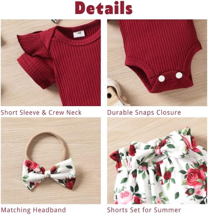 ✔ QUALITY FIRST : Crafted in soft ribbed cotton material, high absorbent and breathable, cozy feel of this baby clothing to keep little baby cool and comfy all spring & summer. Are you ready to wrap your little princess up in this fashion baby girl shorts set?