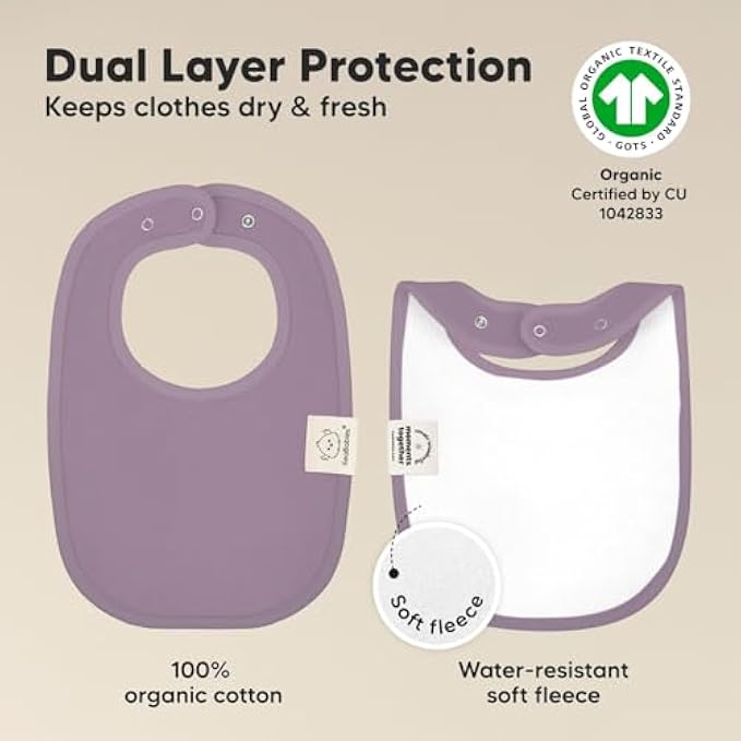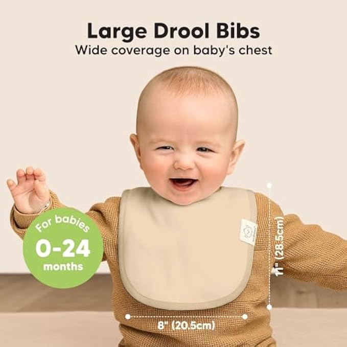 • Super Absorbent - Our organic baby boy and girl bibs are made with 100% organic cotton (GOTS-certified) and backed with water resistant fleece for added absorption. This dual layer design helps to keep your baby clean and fresh all day long. Suitable for newborns, infants, toddlers, heavy droolers and teething babies.