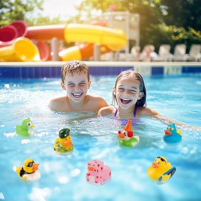 • 30 Pcs Mini Rubber Duckies: Our random assortment rubber ducks for toddlers, which serve as bath toys and entertainment decorations to brighten up any kiddie party. 30 cute rubber duck series party sets with different designs, making toddlers happy all day
