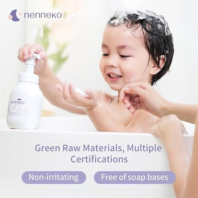 • Functional Needs: Beyond basic cleansing, the Nenneko 3-in-1 product also incorporates moisturizing, hydrating, and soothing properties to meet the diverse needs of parents seeking comprehensive skin care for their babies.The cloud-shaped, non-dense foam provides a comfortable and worry-free bathing experience for infants.The buffering effect of the foam minimizes friction, protecting your baby’s delicate skin from any harm.