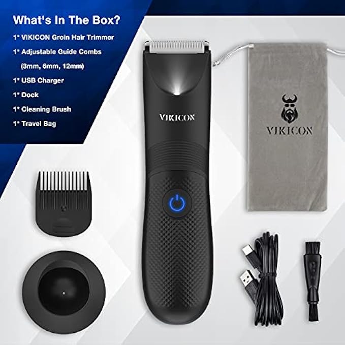 VIKICON Electric Groin Hair Trimmer- The manscape trimmer you need to keep your manliness, neatness and cleanliness. Satisfy your shaving needs without losing beauty. The pubic hair trimmer for men is the most intimate, practical and attitude gift for yourself or for your loved one. LED Light for Blind Spot Lighting- The special built-in LED light helps to trim your hair easily in dim light and see the thinnest hair clearly to ensure you get a safe and thorough shaving hair experience. IPX7 Waterproof, 100% Washable, safe to use even in the bathtub or shower. Smooth Shaver- The limit comb can adjust 3 trim lengths (3mm/6mm/12mm) to help you customize the shaving effect for your balls, groin, chest, armpits, back, leg etc. within a few minutes. The use of a sharp and safe ceramic blade ensures confidence when trimming balls hair. The precise detail attachment head can remove excess hair from head to toe without scratching or pulling your skin or hair. Ergonomic & Convenience Grooming Tools- The body shaver is lightweight and fits your hands comfortably. The pocket-sized design is very suitable for home, business and personal travel. Equipped with a rechargeable USB Type-C Charging that can be plugged into all chargers with USB interface, such as computer, laptap, powerbank and etc. and a 60mins long standby built-in battery to ensure sufficient power. Meet your hair cutting needs anytime, anywhere. How to Use- Fully charge before using the body hair trimmer for the first time, one second to turn the product on, the machine will start to operate, and the LED light will turn on, When the button lights up red, please charge it; blue light means fully Charging; Red and Flash means low battery. Tips: Close to the skin, push the machine slowly and steadily against the direction of the hair flow. We recommend that you invite your partner to help you shave the invisible parts (like the back). Ideal Gifts for Him: The VIKCION pubic hair trimmer is a top-notch gift choice from wife, daughters, sons, siblings, mothers, and girlfriends, perfect for men, fathers, husbands, boyfriends, brothers, and sons on special occasions like birthdays, anniversaries, Father's Day, Christmas, and beyond. We also offer a two-year maintenance coverage for the VIKCION ball trimmer, so you can buy with confidence knowing you're getting a high-quality product.