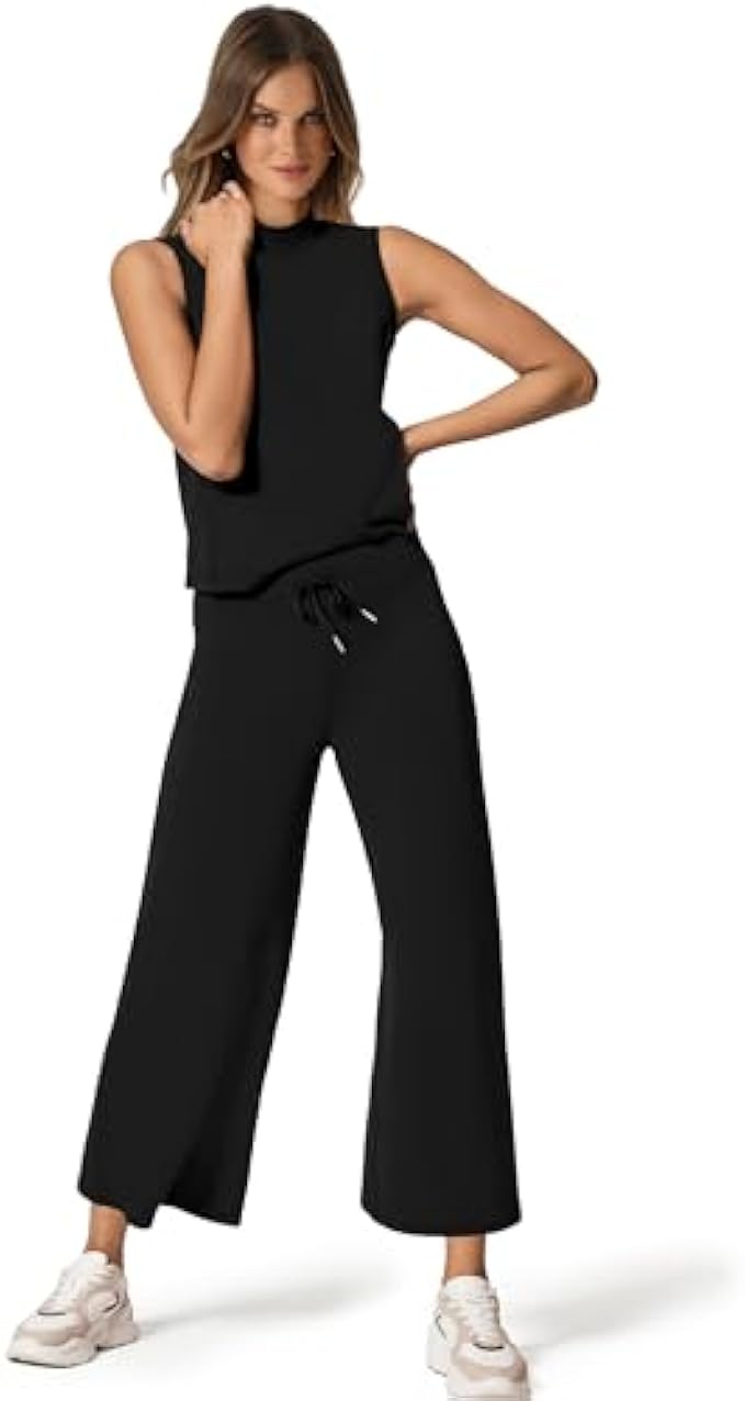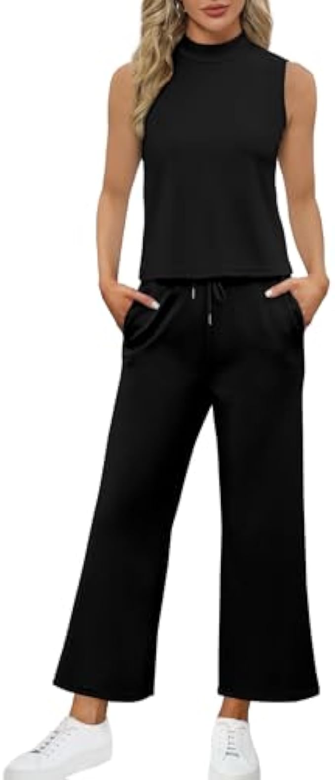 • Design:Two Piece Sets for Women Mock Neck Sleeveless Tops,Wide Leg Crop Pants,Cropped Length,Contoured Back for The Most Flattering Rear View,Elastic Drawstring