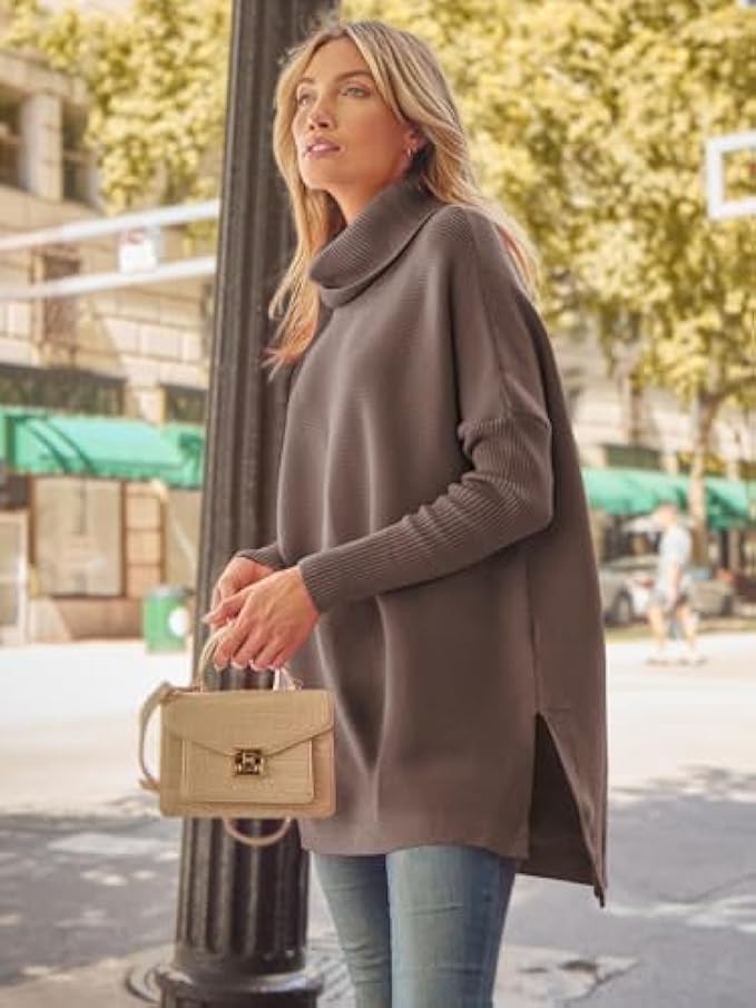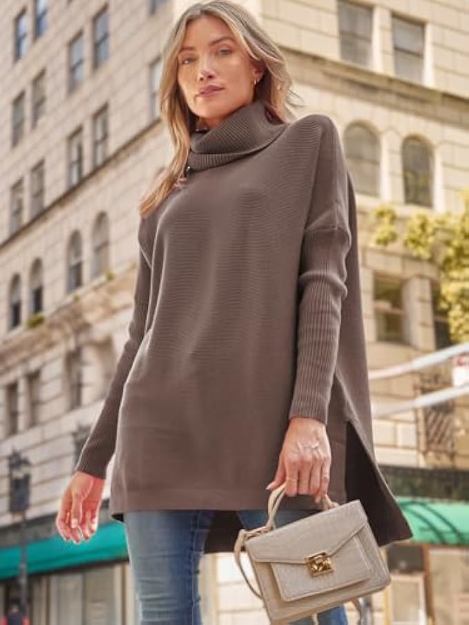 LILLUSORY Women's Turtleneck Oversized Sweaters 2024 Fall Long Batwing Sleeve Spilt Hem Tunic Pullover Sweater Knit Tops