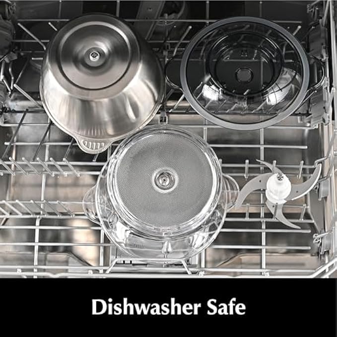 • 【Easy to Clean】bowl ,lid and blade all are dishwasher safe. For quick clean, just clean with dish soap and water .For Motor ,pls just clean it with small brushes and wet cloth.Motor can not immerse in water.