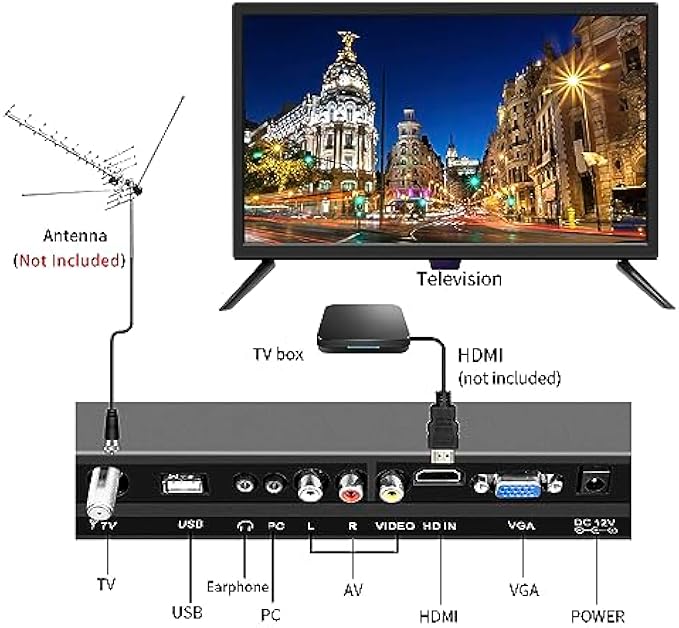 • 📺Multiple Ports for LED TV: 22 inch TV(NOT SMART TV) comes with a lot of compatibility features including: Built in USB Interface,(ATSC) RF In, 12V DC Power Supply, AV,VGA and HDMI Inputs, Headphone Jack.HDMI、VGA and USB inputs are connected with external audio and video playback. AV input is there to use with DVD players or Game Systems. Built in speaker for party while Headphone Jack is for private viewing, in addition, ATSC Tuner and Remote Control make this a potential move TV.
