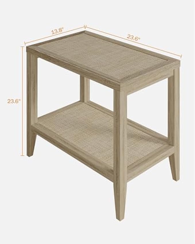 SICOTAS Rattan Nightstands Set of 2 - Boho Bedside Tables Narrow End Table Living Room Set of 2 Side Table with Rattan Storage Shelves for Small Space - Light Oak