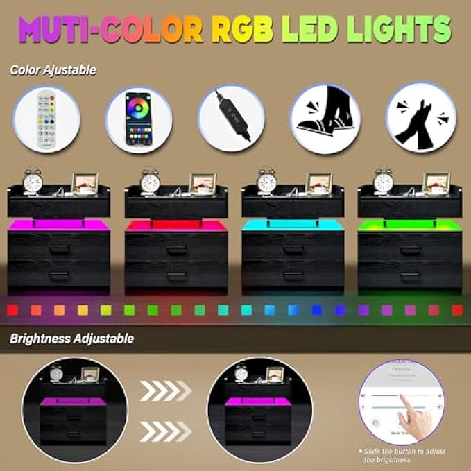 • 【Transparent Acrylic with Multi-color RGB Light】The nightstand features multi-color RGB LED lights, the colors of which can be customized according to your preferences. The light has three color modes to choose from, as well as adjustable brightness. Voice control mode even makes the LED lights dance to your voice or music. The transparent acrylic can perfectly transmit the light, creating a floating visual effect. The chic design, combined with the perfect lighting, gives your home a modern and stylish look.