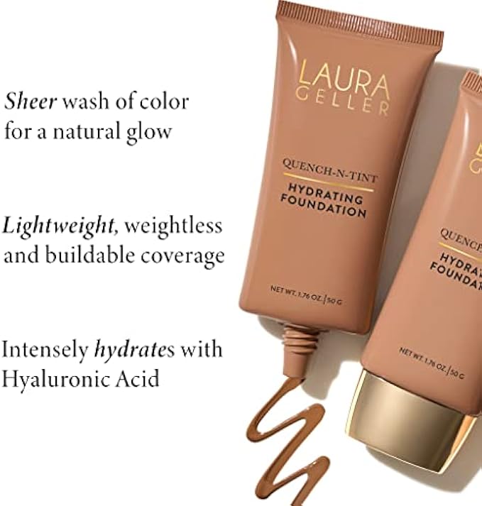 QUENCH-N-TINT HYDRATING LIGHTWEIGHT COVERAGE HYLAURONIC ACID LIQUID FOUNDATION MAKEUP: Say goodbye to dry skin and hello to hydration! This lightweight foundation is the best of both worlds: sheer to coverage and a refreshing feel. SKINCARE MOISTURIZER & MAKEUP FOUNDATION: It’s like makeup and moisturizer in one. Hyaluronic acid locks in moisture and a hint of tint evens out skin tone to achieve the “no makeup” makeup look with ease. “NO MAKEUP” MAKEUP LOOK: A transformative, water-based foundation with invigorating skincare benefits that hydrate skin and soften fine lines with a sheer hint of color. PERFECT FOR: dry skin, uneven complexion, fine lines and wrinkles. EASY TO USE APPLICATION: Apply all over clean skin with your finger or foundation brush and begin to blend upward and outward for natural coverage and a luminous finish. Build to your desired level of coverage.