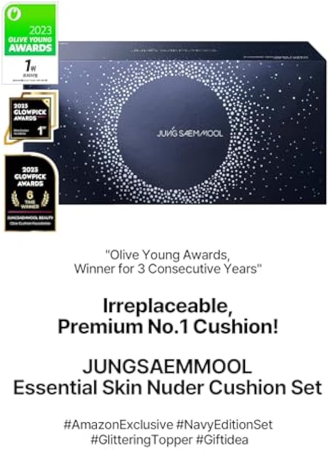 JUNG SAEM MOOL [JUNGSAEMMOOL OFFICIAL] Essential Skin Nuder Cushion Special Set (Fair) | Nuder Cushion Navy Edition (Refill included) + Lip-Pression Glittering Topper (2g) + Navy Cushion Puffs (3pcs)