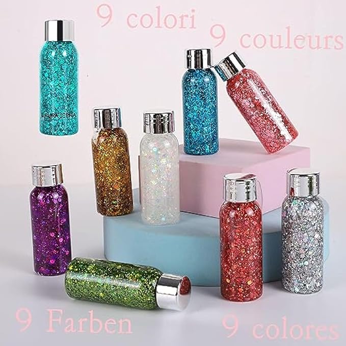 • 【Wide Application】With 9 colors, this glitter gel has a variety of uses to add a touch of glamor to your life. It can be used on eyeshadow, eyebrow, lips and cheeks for any event and occasion you want.