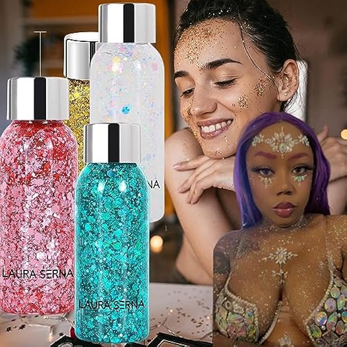 • 【Easy Removal】The body glitter gel set is sticky and can be used directly on the body wherever you want to put makeup without any additional glue. Just use makeup remover water and soap to remove it.
