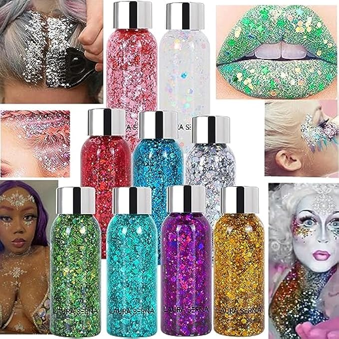 • 【Package Included】You will get 9 packs of different color liquid glitter gel, great for party, halloween, christmas, new year, wedding, birthday, bar or stage unique makeup anywhere