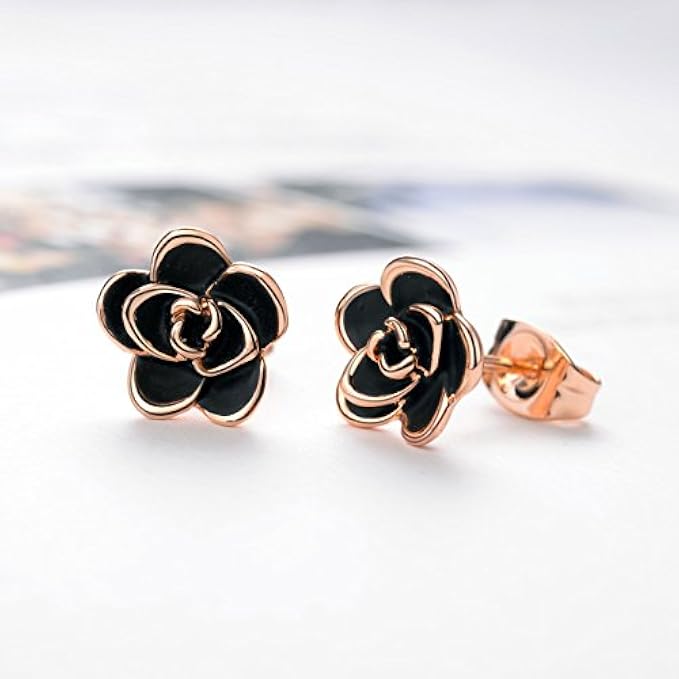 Rose Flower Stud Earrings for Sensitive Ears Hypoallergenic, Cute Gold And Silver Ear Studs for Women Girl, Nickel Free