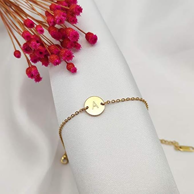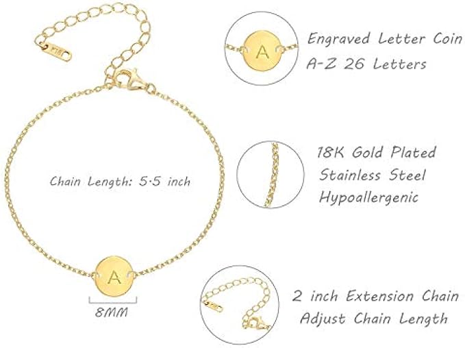 Material: This delicate gold coin initial bracelet is made of high polished stainless steel, 18k real gold plated; It's hypoallergenic, comfortable and safe to wear.