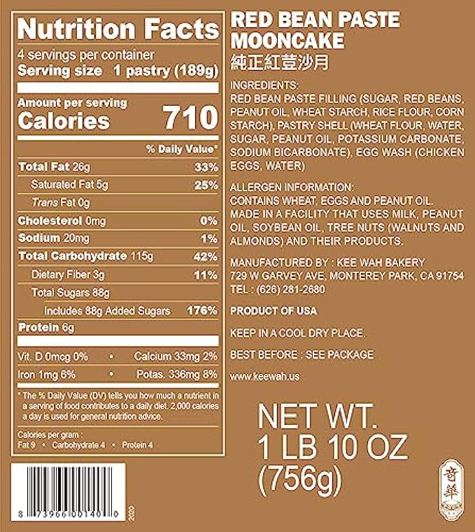• BAKED IN THE USA: Kee Wah’s Signature Mooncakes are baked in Kee Wah’s Los Angeles, USA bakery. Kee Wah is a well-known brand, started in Hong Kong in 1938.