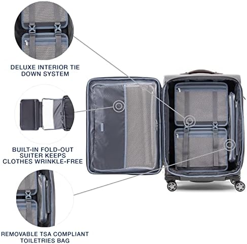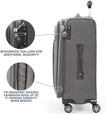 Travelpro Platinum Elite Softside Expandable Checked Luggage, 8 Wheel Spinner Suitcase, TSA Lock, Men and Women, Vintage Grey, Checked Medium 25-Inch