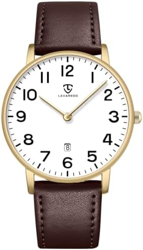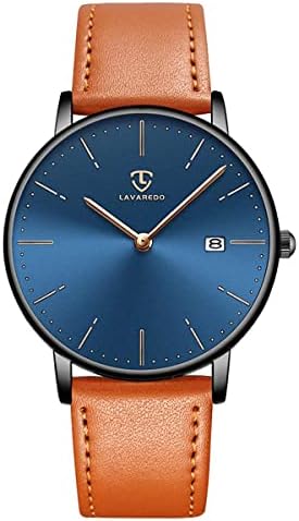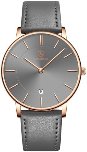 Ultra-thin Simple Design: Ultra-thin 6.7 mm thickness dial with rounded black lines watch case, minimalist style appearance, unique and eye-catching. Unisex Fashion Wrist Watch: Classic and stylish black dial, elegant rose gold time marks and small date window. Fashion design suitable for men and women. High Quality Material: Soft and comfortable leather strap with belt buckle, easy to remove and adjust. Leather strap durable and exquisite, scratch-resistant crystal mirrors meet your daily needs. Waterproof: Daily waterproof, splash/rain resistant(except sauna, bathing, diving). Unique Design: Simple and exquisite double-hand design, with only the simplified display of the hour and minute hands, providing a clear reading experience. #10,363 in Clothing, Shoes & Jewelry ( ) #35 in