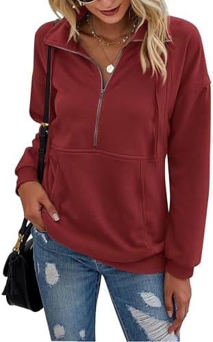 Material: Super soft and skin-friendly fabric(Polyester) provide you a great wearing experience. Solid color long sleeve half zip women's fashion hoodies & sweatshirts, loose comfy winter/fall clothes for women 2025 Features: Half zip pullover women, Solid color cute sweatshirts for women, Lapel half zip up sweatshirt women, Womens sweatshirt no hood, Long Sleeve pullover sweatshirts for women, Ribbed cuffs, 1 front big pocket, Oversized sweatshirt for women, Soft zipper fall sweatshirts for women loose fit, Casual womens sweatshirts no hood, Drawstring neck womens oversized sweatshirts, Quarter zip pullover women Versatile Half Zip Pullover Women: Drawstring lapel womens sweatshirt in solid color is simple yet fashion. Half zipper womens sweatshirts no hood are easy to put on and take off. Relaxed fit plain cute sweatshirts for women can be dresses up or down, perfect with leggings, jeans or shorts Plain Sweatshirt Pullover Tops with Pocket great for daily life, family gathering, vacation, school, work or any casual occasions; Womens fall fashion 2025, also suitable for spring, summer night or winter Tips: Please Refer to Our Size Chart (the last image live on Amazon) before Ordering(NOT AMAZON SIZE). Any other questions, please contact us freely! #1,378 in Clothing, Shoes & Jewelry ( ) #17 in