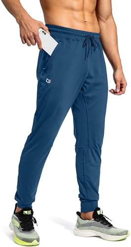 The pants are made of 87% polyester and 13% spandex. Smooth and stretchy material keep comfortable wear experience. Elastic waistband and adjustable inner drawstring offer different people's custom fit. Side deep pockets and back pocket are all designed with zipper to ensure put phone, cards safe when moving. Tapered trouser legs and stretchy ankle cuffs keep length suitable for doing exercise. These men's pants are perfect for gym, soccer, running, jogging, workout, athletic, track, traning and others sports. #155 in Clothing, Shoes & Jewelry ( ) #1 in