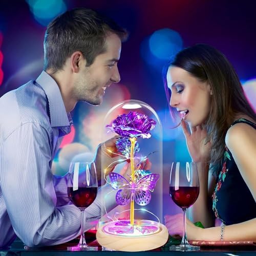 QUNPON Glass Rose Birthday Gifts for Women Mom Her from Daughter Son Light Up Rose Colorful Flower Rose Gift in A Glass Dome Mother's Day Valentines for Woman