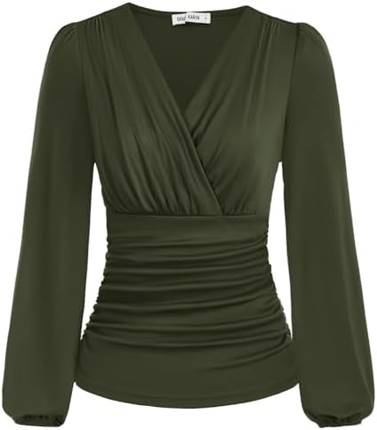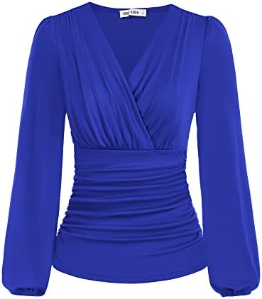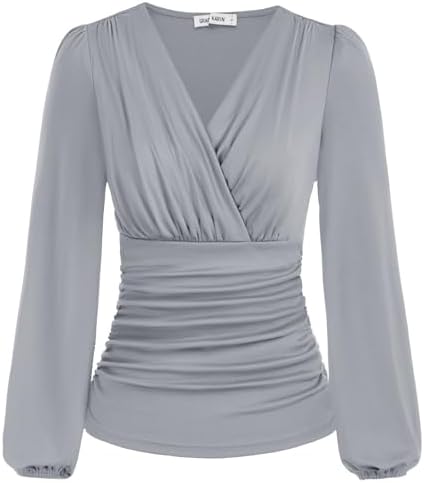 GRACE KARIN 2025 Womens Tops Elegant Wrap Blouse V Neck Work Shirts Long Sleeve Dressy Casual Ruched Top