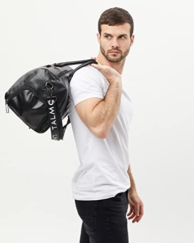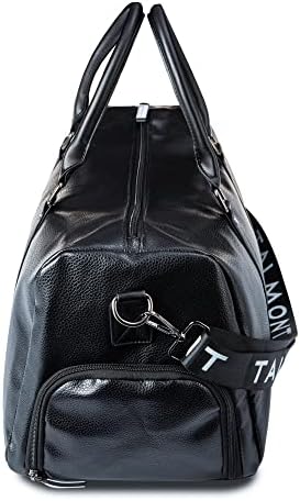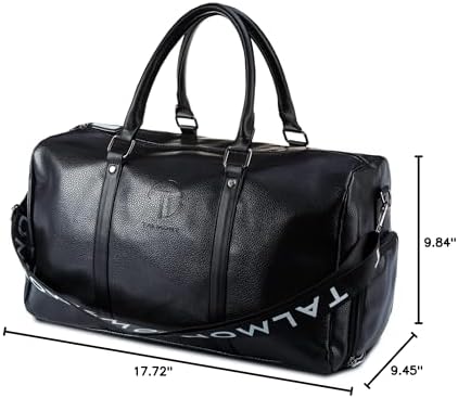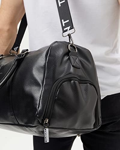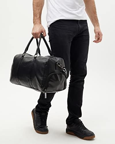 17.7 inch Gym Bag Men's Duffle leather Bag with Shoe Compartment for Sports Travel Gym Carry-on Luggage with Adjustable Shoulder Strap, Weekender Travel Overnight Bag for Men (Black)