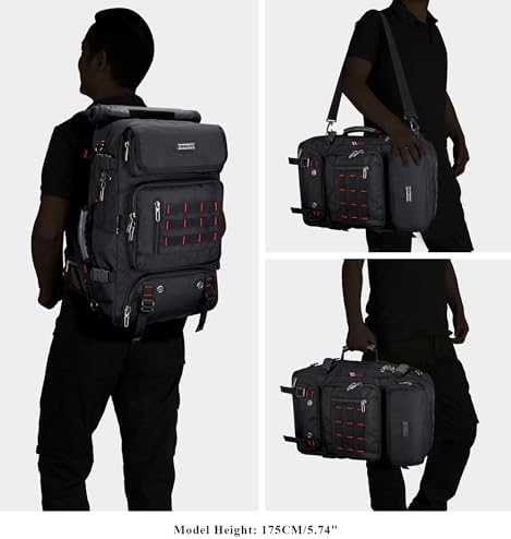WITZMAN Carry on Travel Backpack for Men Airline Approved Convertible Nylon Duffle Backpack Luggage Bag (B682 Black)