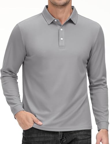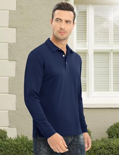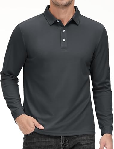 MAGCOMSEN Men's Polo Shirt Long Sleeve Golf Shirts Quick Dry Lightweight 3-Button Performance Work Fishing Athletic