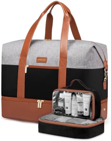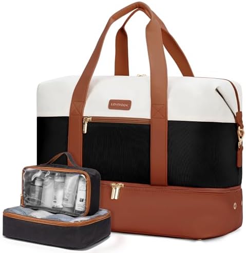LOVEVOOK Weekender Bag, Large Travel Duffel Bag for Women with 2 Packing Cubes, Carry on Overnight Bag with Shoe Compartment, Mom Hospital Bags for Labor and Delivery