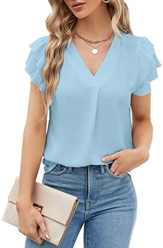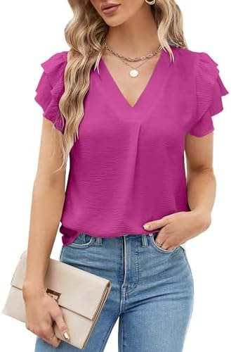 Material:95%polyester and 5%spandex, The dressy tops for women is lightweight, soft and comfortable touch with stretch fabric Features: Womens tops dressy causal, classic v neck, flutter short sleeve, pleats at bust, non-transparent fabric make the casual tops for women look more fashion and chic. Style: loose and comforable, the blouse for women can as going out tops for women, ladies tops and blouse, teacher shirts, business casual tops for women Occassion: The work shirt for women perfect to pair with skinny jeans,leggings and heels for any leisure,daily wear,going out,office Note: We strongly recommend that you take your body measurements first, and then refer to our size table before ordering, the size table data is the body size, not the clothing size; XS=US 0-2, S=US 2-4, M=US 6-8, L=US 10, XL=US 12, 2XL=US 14. #1,063 in Clothing, Shoes & Jewelry ( ) #15 in