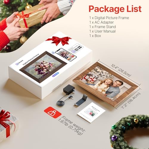 【Instant Wireless Sharing Via APP】: Capture every moment and instantly share it with your family/lover anywhere in the world! Connect the digital frame to home WiFi, and then download the "Uhale" App on your phone (download from Android or iOS). With unlimited user connections, the electronic picture frame allows unlimited family members to upload photos using their own smart devices, you can easily share your precious moments with loved ones 【10.1 Inch HD IPS Touch Screen Display and Easy Setup】: The 1280x800 resolution offers a stunning visual experience from all angles and the IPS technology displays your wonderful memories in full HD. Touch-screen and user-friendly interface design make it easy to set up and use with just one click of your finger! Suitable for all ages, particularly the elderly who may prefer simpler operations 【Auto-Rotate and Large Storage】: With automatic rotation feature, you can place the digital memory display frame in either portal portrait or landscape mode, it will adjust the orientation of your photos to fit the frame, provide you with the best viewing experience. Can be wall mounted. Has 32GB internal memory (keeps over 100000+ photos) and supports up to 32GB Mirco SD card, you can easily import, save and backup your photos and videos 【Best Wishes and More Custom Functions】: You can edit and send instant or timed wishes to your loved ones on special festivals, such as Valentine's Day, Mother's Day, Father's Day, Christmas, etc.. Never miss out great moments by sending best wishes anytime. And the wifi smart frame also provides a variety of custom setting functions including slideshow, screen brightness adjustment, volume adjustment, hide/publish images, display caption, sleep mode, and so on 【Videos with Sound Make Memory More Vivid】: MaxAngel electronic picture frame is not a traditional photo frame that can only display photos, it can also play vivid videos via insert Micro SD Card directly or import via Micro SD Card to the frame without any video time limit! Please note that the video will upload up to 120 seconds if you upload via Uhale app 【Absolute Privacy and Security】: MaxAngel smart rotating picture frame upload your photos/videos through "Uhale" APP, which is a very private app that nobody has access to your digital frame except the users you added. Absolute Privacy and Security 【Ideal Gi-ft to Keep Friends and Family Connected】: Sending a digital photo frame pre-loaded with memorable photos or videos to your friends and family is a heartwarming surprise for anyone! It is the great gi-ft choice for birthdays, graduations, weddings, Christmas, family reunions and many other occasions. Keep your memories close and share them easily with this Smart Digital Picture Frame 【Great Customer Service, Order with Absolute Confidence!】: MaxAngel factory has strict standards for every step of the production of photo frames and all photo frames have undergone a 300-hour machine aging test to ensure the quality of the photo frame. We provide 365 days replacement service and life-time technical support. If you have any questions about your frame, please tell us anytime, and our customer service team is available to assist you with prompt and friendly service