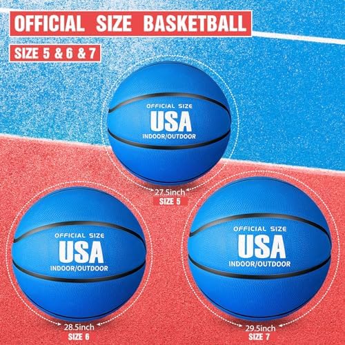 Libima 4 Pcs Rubber Basketball with Pump Official Size 5 6 Indoor Outdoor Basketball Sport Gift for Game Practice Training Kids Teens Adults Streetbballs
