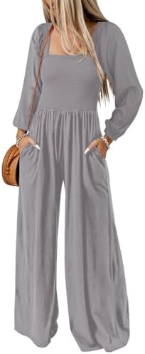 Dokotoo Women's Casual Loose Overalls Jumpsuits One Piece Long Sleeve Wide Leg Long Pant Rompers With Pockets