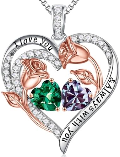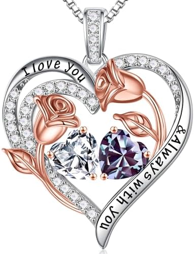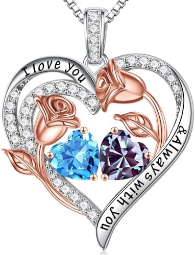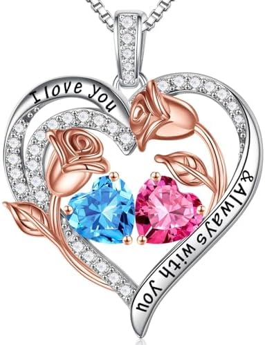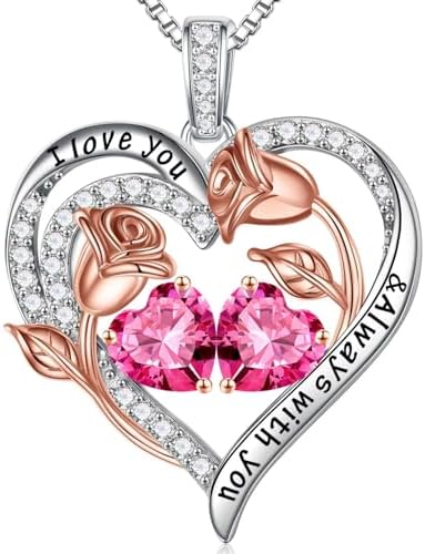 Iefil Birthstone Necklace for Women - 925 Sterling Silver Rose Heart Birthstone Necklace Birthday Gifts for Women Anniversary Jewelry Gifts for Her Wife Mom Daughter