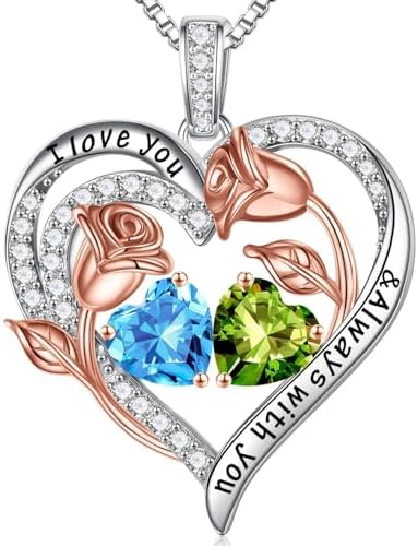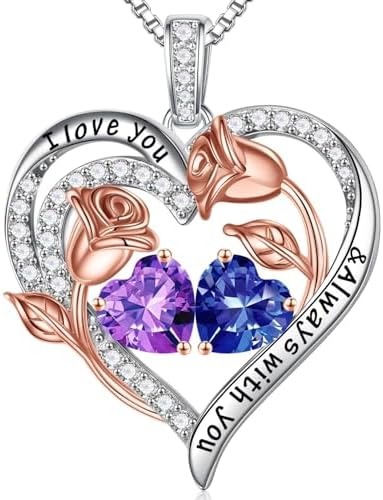 ALL RIGHTS RESERVED, PLEASE DO NOT COPY. (版权所有,请勿抄袭) GIFTS FOR WOMEN: Our double birthstone pendants are available in 78 styles. You can give your wife, mom, daughter, aunt, sister or grandma a big surprise on Mother's Day, Birthday, Christmas, Valentine's Day or other special occasions. Our elaborate double birthstone pendant, one representing your birth month and one representing hers. When she wear this heart necklace, she will genuinely happy for this. MATERIALS: The box chain and double heart pendant are both made of 925 Sterling Silver. High quality platinum plating stuff that will not turn your skin to green, red or itchy. The box chain is strong enough and will not break. SIZE: 19 inches + 2 inches (Adjustable) Chain. This length works on practically anyone. Our rose flower necklace highlight understated elegance and refined femininity. The double heart pendant is bigger than normal, it's an excellent gift choice for women daily wearing home or office. MEANING: The heart pendant engraved with the words "I love you & Always with you" symbolizes your forever love for the special women in your life. Of course, you can also customize a necklace for your parents and grandparents, choose their respective month of the birthstones, as a record of their love between them, your family will love this special gift. Comes with a beautiful PU jewelry box. AFTER SALES SERVICE: Any question about your Rose Heart Birthstone Necklace, please contact us and we will answer your question within 24 hours and give you a satisfactory answer. #7,814 in Clothing, Shoes & Jewelry ( ) #67 in