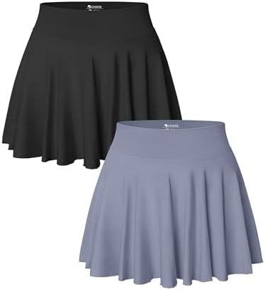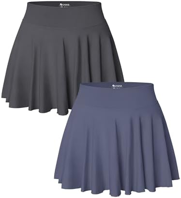 OQQ Women 2 Piece Skirts 2 in 1 Flowy Basic Versatile Stretchy Flared Casual Mini Skirts