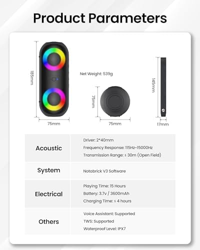 【Hi-Fi Stereo Sound】:Dual full range drivers provide 30W stereo sound quality with clear highs, accurate mids and deep bass.Built-in MIC, easily accept hands-free calls(Support Siri voice assistant function, one-key activation, enjoy smart speaker life) 【RGB Colorful Light Show】:The standalone RGB lighting system is designed for night events with 7 light colors and 6 light modes, mixed color flashes that sync with the beat, create a pulsing light show for any song, and keep the party going with streaming music in HD. 【Pair-360° Immersive Surround Sound】:Through the Wireless Pairing function, Pairing 2 speakers through a single device to obtain 60W stereo surround sound.(The playback modes of BT and AUX both support to realize wireless pairing stereo function, and we have improved the delay phenomenon of the Wireless Pairing state.) 【Super Hardware Configuration】:👍Built-in 3600mAh rechargeable battery (with Typ-C fast charging port, the longest charging time<4H);👍IPX7 most advanced waterproof material structure;👍Bluetooth 5.0 with the most cutting-edge A2DP technology👍 【Enjoy music anytime, anywhere】This is a themed portable speaker for leisure, entertainment, office, indoor, outdoor, hiking, beach, etc. Let's enjoy great music at home theaters, parties, beaches, parks, or anywhere else imaginable.