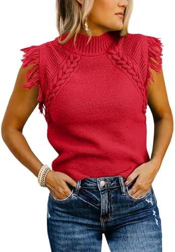 Material - Sleeveless sweater tank tops for women made of soft knit fabric, the ribbed mock neckline and braided cable knit trim detail adds a cute touch of boho, perfect for staying cozy and stylish in spring, summer and fall Features - This trendy pullover sweater vest makes a modern statement with flattering mock neck, contrast pointelle knit at shoulders with fringe, semi fitted bodice. All detailing to create a timeless and elegant finishing touch that will elevate any ensemble Match - Refresh your wardrobe with this chic knitted sweater vests, wear it alone with shorts, jeans, skirts, or layer it up over long sleeves, or layering under coats during cold weather, you’ll be ready to take a fashion-forward look Occasions - Whether you're dressing up for a night out or keeping it casual, this solid color short cap sleeve sweater vest is a versatile and must-have addition to your wardrobe Warm Tips - Machine or hand wash in cold water / Semi-fitted from S to XL, please refer to size chart before order #5,136 in Clothing, Shoes & Jewelry ( ) #3 in