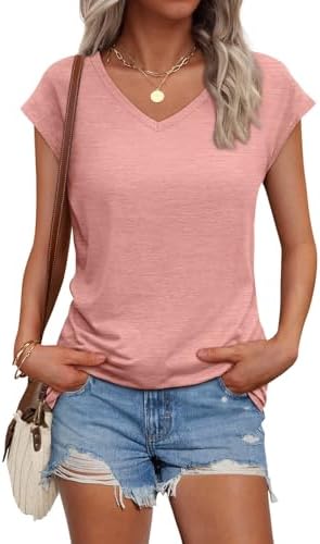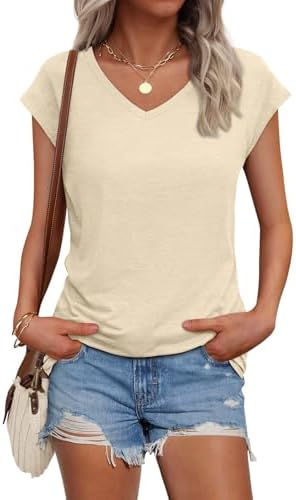 Material: Made of high quality fabric consisting of 82%Polyester+12%Rayon+6%Spandex. The fabric is super soft and comfortable, very suitable for daily casual wear. The Tshirts is breathable and elastic, keeping you cool and comfortable in spring and summer Features: AUTOMET casual top is soft, breathable and very comfortable to wear. The fabric has a lightweight texture for a relaxed and casual look, perfect for a basic tees DESIGN: AUTOMET Casual T-Shirt is made with loose fit and Imitation cotton fabric, which makes the garment look casual and comfortable, perfect for daily wear. The V neck with cap sleeves makes the top look fashion while balancing comfort OCCASION: AUTOMET casual basic tees very suitable for daily dressed, casual, dating, office, work, beach, vacation, streetwear, running, workout, exercise or any occasions MATCH: AUTOMET tops features a relaxed fit and simple design, making it easy to pair with jeans, shorts, leggings, joggers, sweatpants or skirts. It's perfect for spring, summer and fall #1,840 in Clothing, Shoes & Jewelry ( ) #85 in