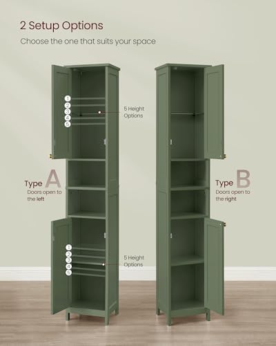 VASAGLE Tall Bathroom Cabinet with Lights, Slim Bathroom Storage Cabinet, Freestanding Narrow Cabinet with Adjustable Shelves, for Small Spaces, Modern, 11.8 Inches Wide, Forest Green UBBC566C01