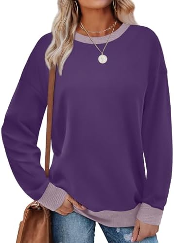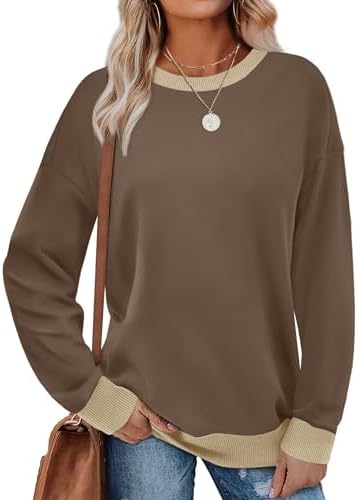 Saloogoe Sweatshirts for Women Crewneck Long Sleeve Loose Fit Tops Color Block Ribbed Trim Fashion 2024