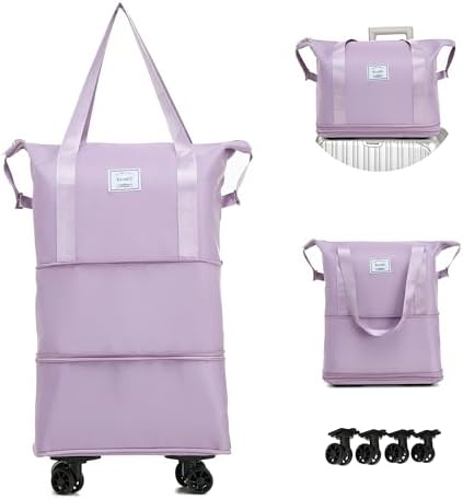 Travel Rolling Duffel Bag with Removable Wheels,Expandable Foldable Carry-On Luggage for Trip or Hospitalization(khaki)