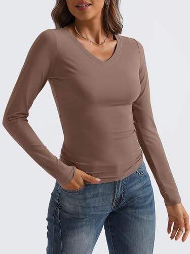 Material: Trendy Queen long sleeve shirts for women are made from High-Quality Materials with 88% Polyester and 12% Spandex. The Fabric is Sweat-Wicking, Non-See-Through, and Ultra-Soft with a high-stretch Technology like a Second-Layer Skin on your body Design: high-stretch fitted style, v neck, long sleeve shirts, tight underscrubs layer, you can wear it regularly or fold it up like a crop top, cute tops, slim fit, casual shirts, y2k style fashion Match: These long sleeve tops for women are the ideal choice in your wardrobe, one of the best choice for spring, fall and winter outfits. Easy to match with jeans, leggings, sweatpants, jackets, cardigans, hoodie, sweater, boots, and so on Occasion: Added the element of elegance and fashion, these basic shirts create wonderful outfits to wear for all seasons, suits for work, office, casual, daily, vacation, holiday, party, home, street, etc Care: Machine wash recommended with a laundry bag, machine washable with like colors;hang to dry #2,443 in Clothing, Shoes & Jewelry ( ) #104 in