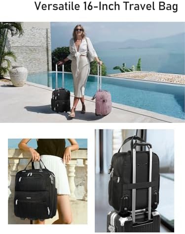 Underseat Carry On Luggage with Wheels, 16-inch Softside Rolling Under Seat Luggage, Lightweight Overnight Small Mini Carry On Suitcase for Women Men(Black)