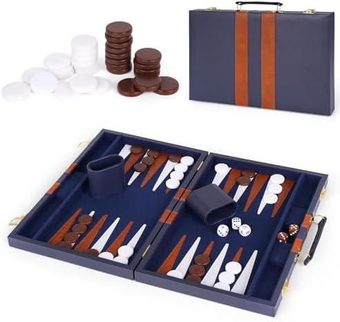 15 Inch Backgammon Sets for Adults ,Classic Family Board Game with Premium Folding Leather Backgammon Case, Portable Travels Strategy Backgammon Game Set